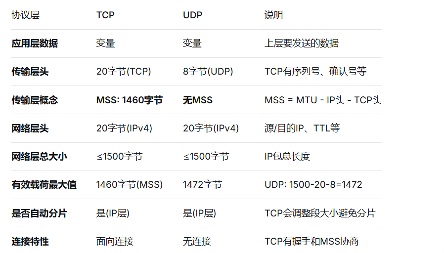 MTU: 在数据链路层中,指网络链路中能传输的最大数据包大小,通常是1500,