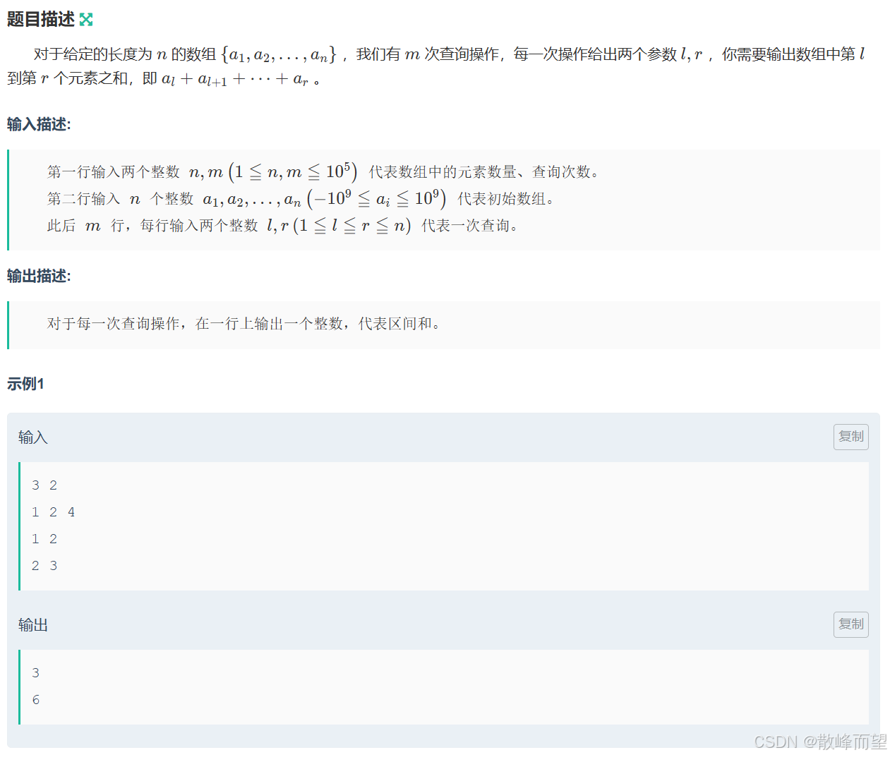b. 查询 [l, r] 区间和,则f[r] - f[l - 1]