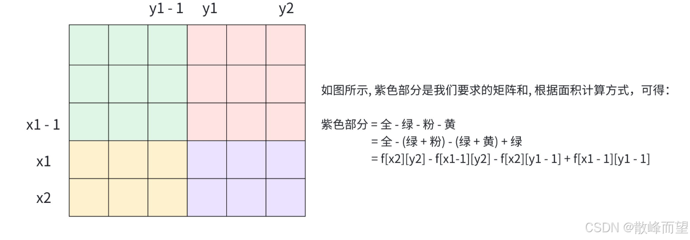 a.预处理出二维前缀和矩阵 f[i][j] 表示从 [1, 1] 到 [i, j] 区域内所有的元素和。