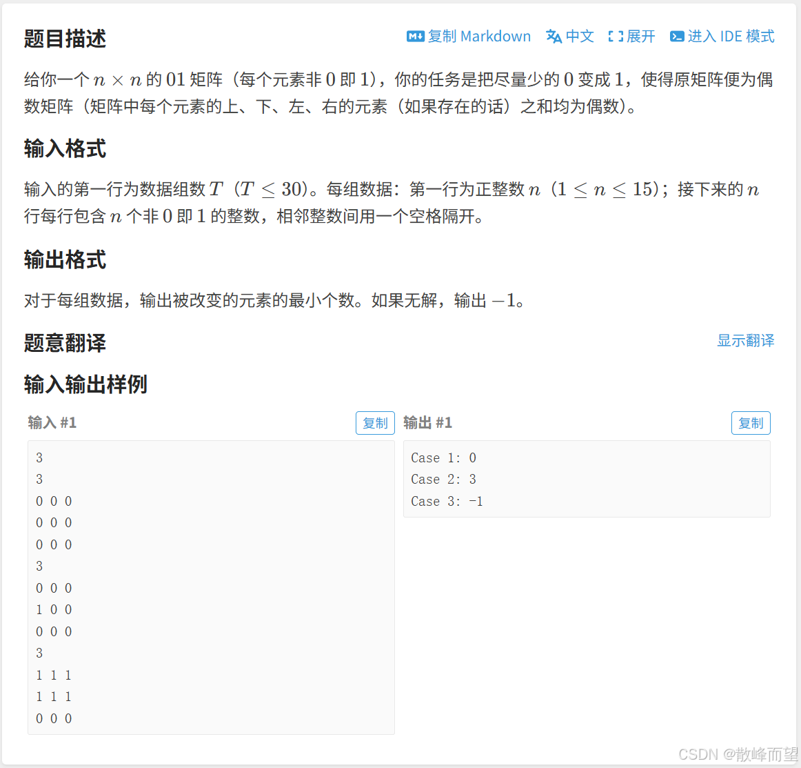 - 暴力枚举第一行的所有最终状态 ,直接二进制枚举所有结果