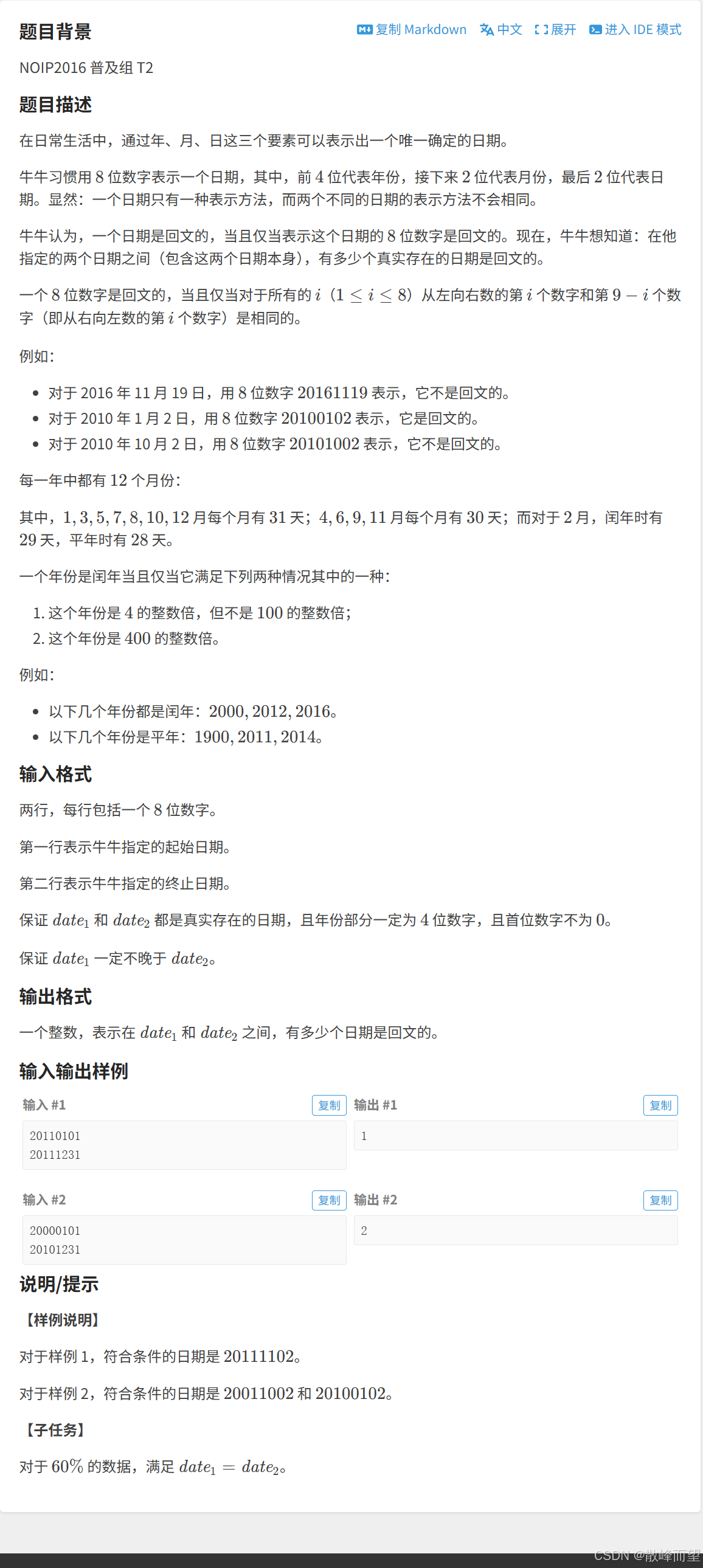 - [1.1.2 回文日期](#1.1.2 回文日期)