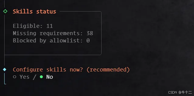 继续下面选择 skills,也是选择 No,如下图
