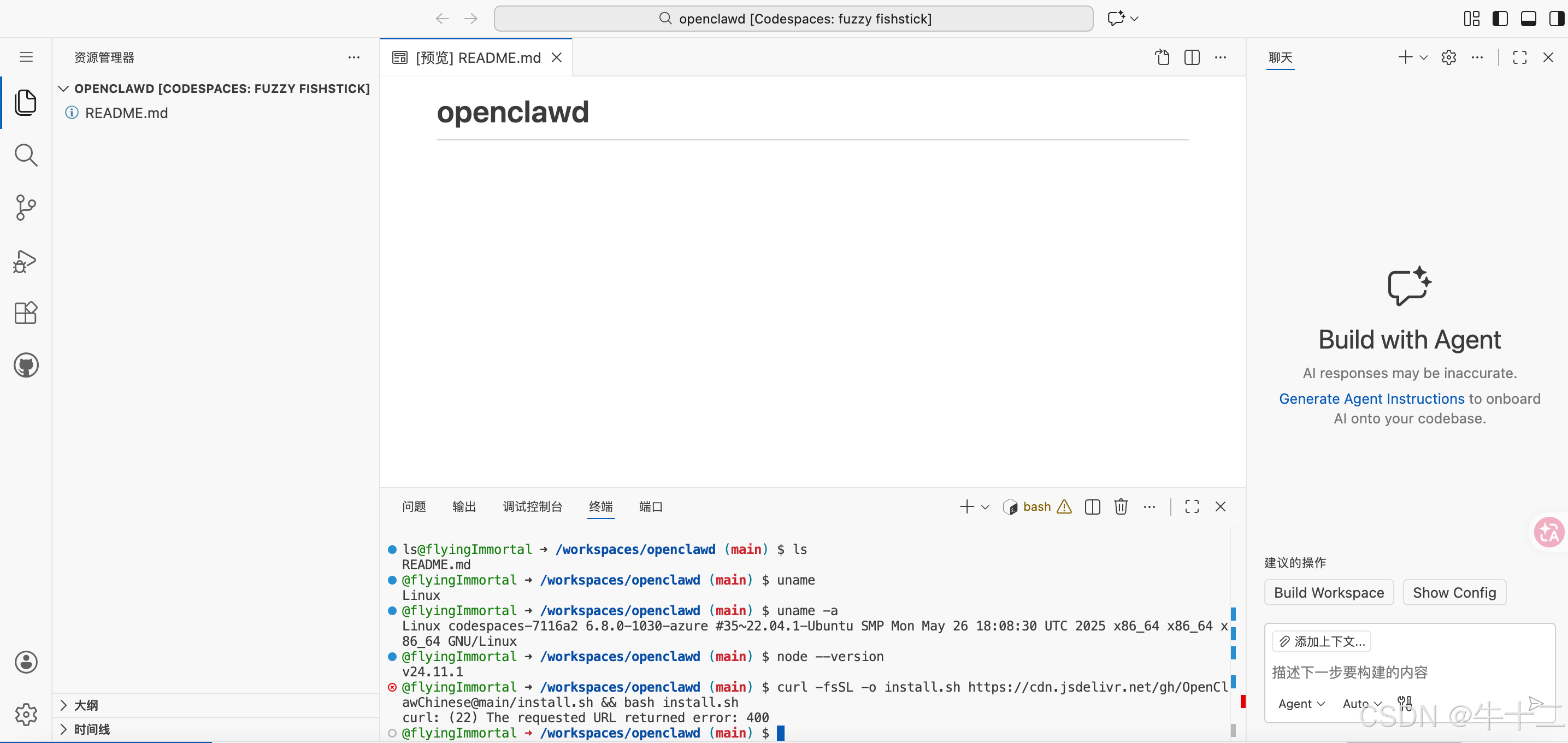 打开codespace