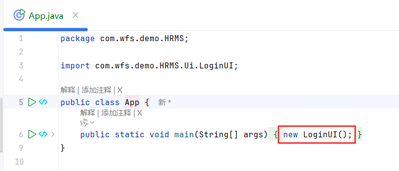 - 在App类内部创建LoginUI类: App依赖LoginUI
