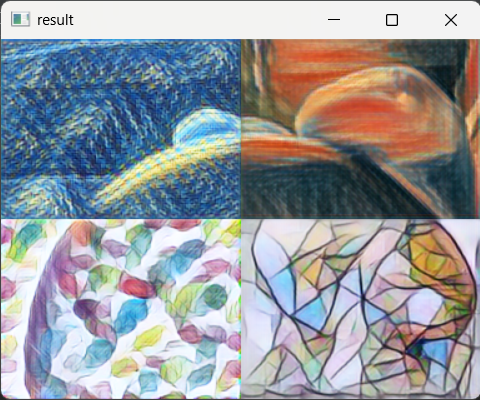 net = cv2.dnn.readNet('model\\candy.t7') # 得到一个用torch训练之后的星空模型