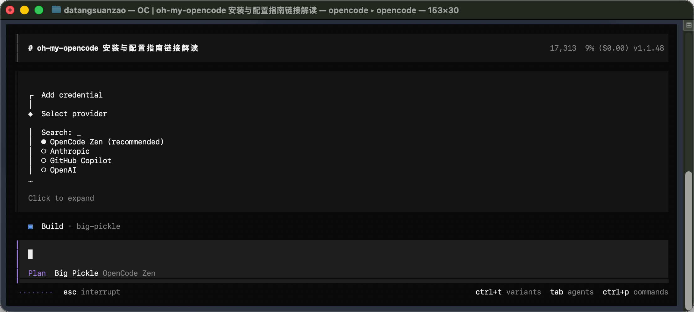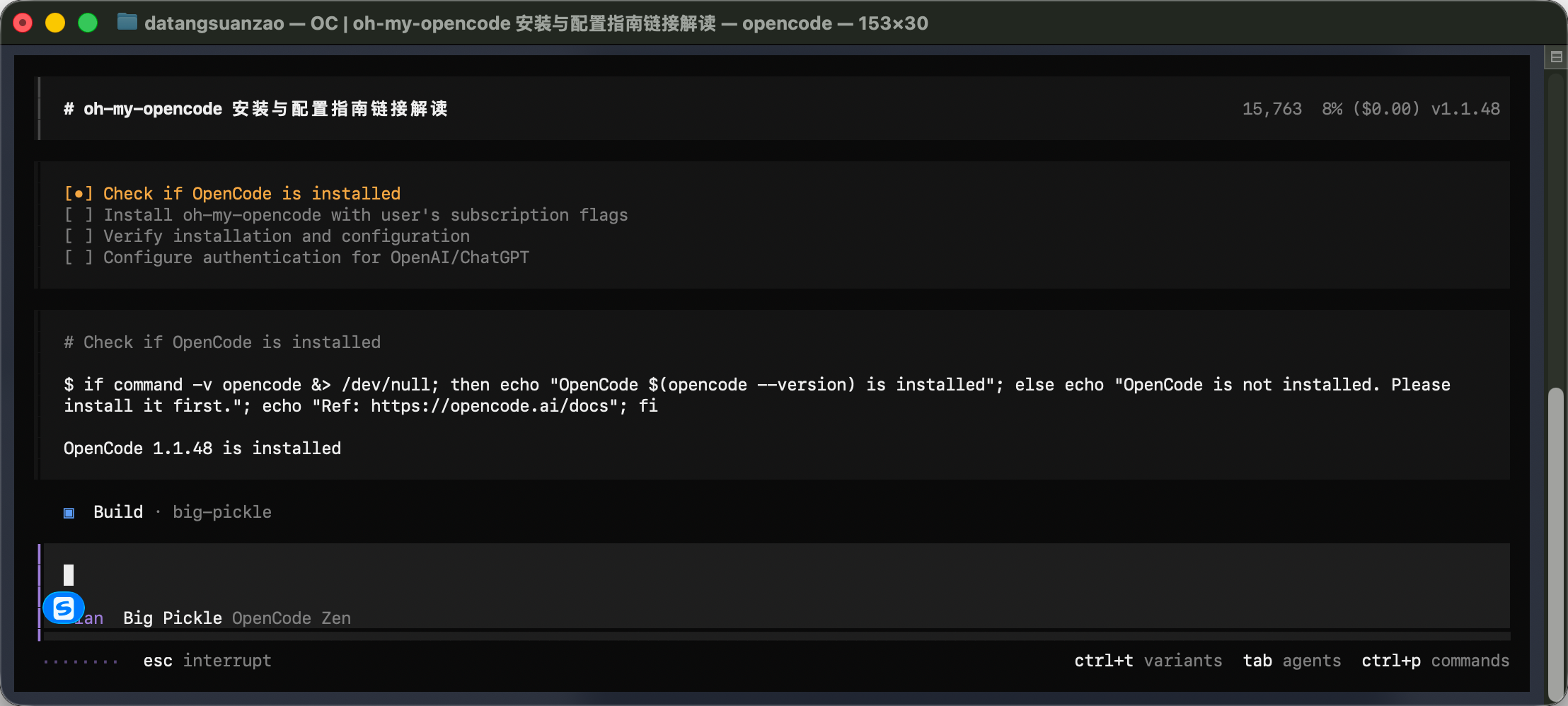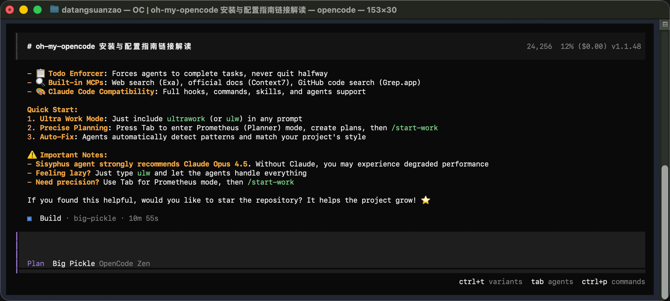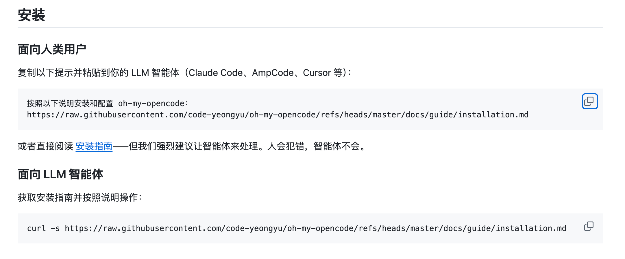 安装oh-my-opencode也特别简单,在OpenCode中,新起一个对话,输入以下提示词即可让 AI 自动安装 Oh My OpenCode :
