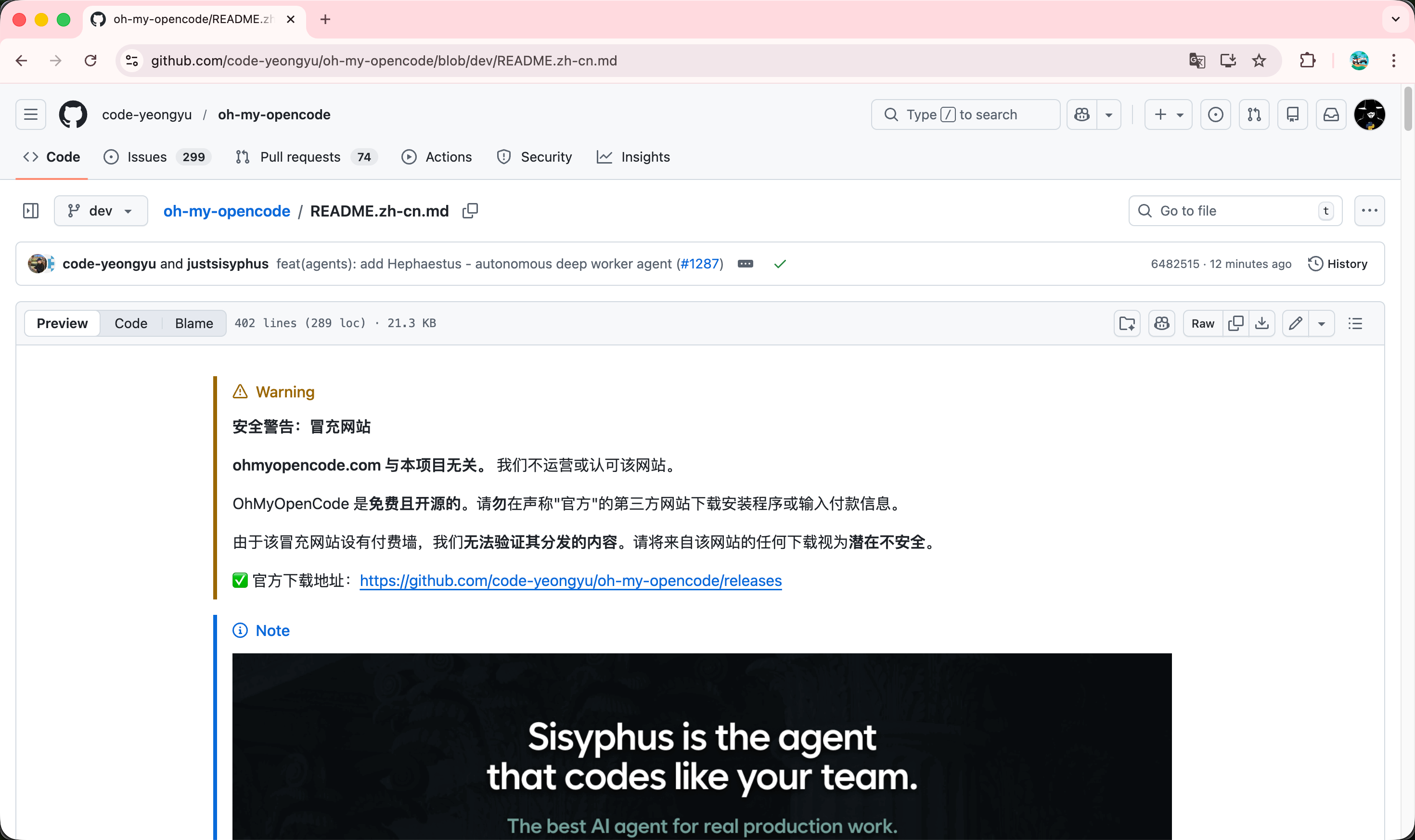👉 **中文文档首页:**https://github.com/code-yeongyu/oh-my-opencode/blob/dev/README.zh-cn.md