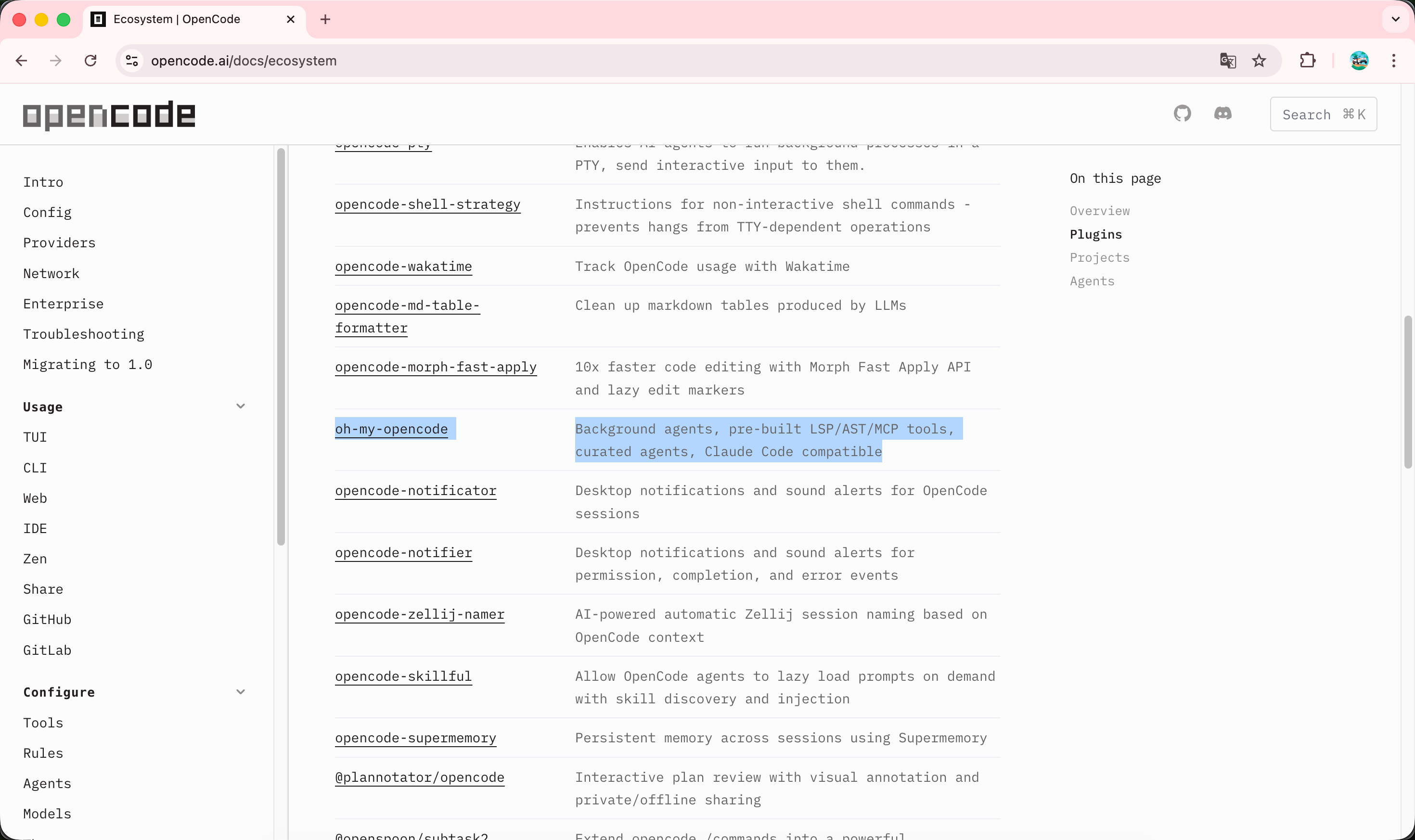 👉 **OpenCode 生态页提及:**https://opencode.ai/docs/ecosystem