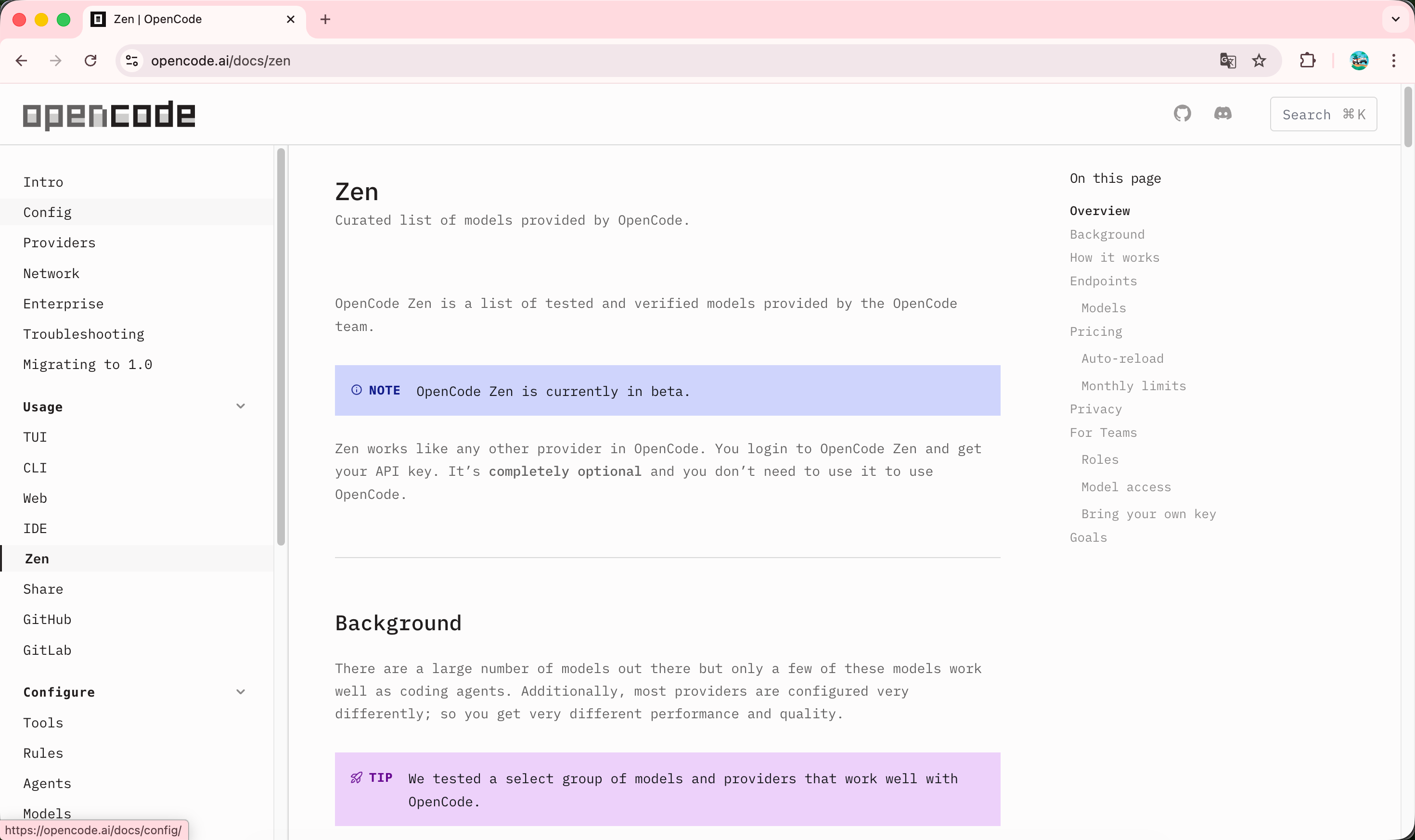 👉 OpenCode Zen 订阅与注册入口 --- 用于注册/登录并获取访问 Zen 的 API/订阅密钥
