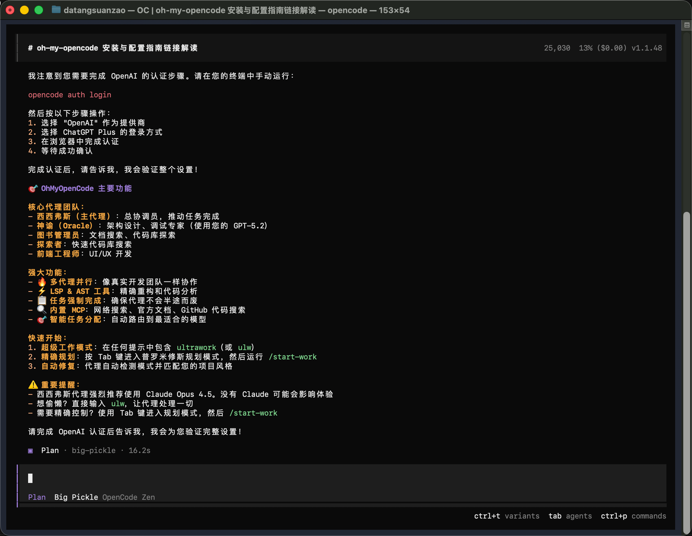 安装完成后,重启 OpenCode 即可使用 Oh My OpenCode 的全部功能。