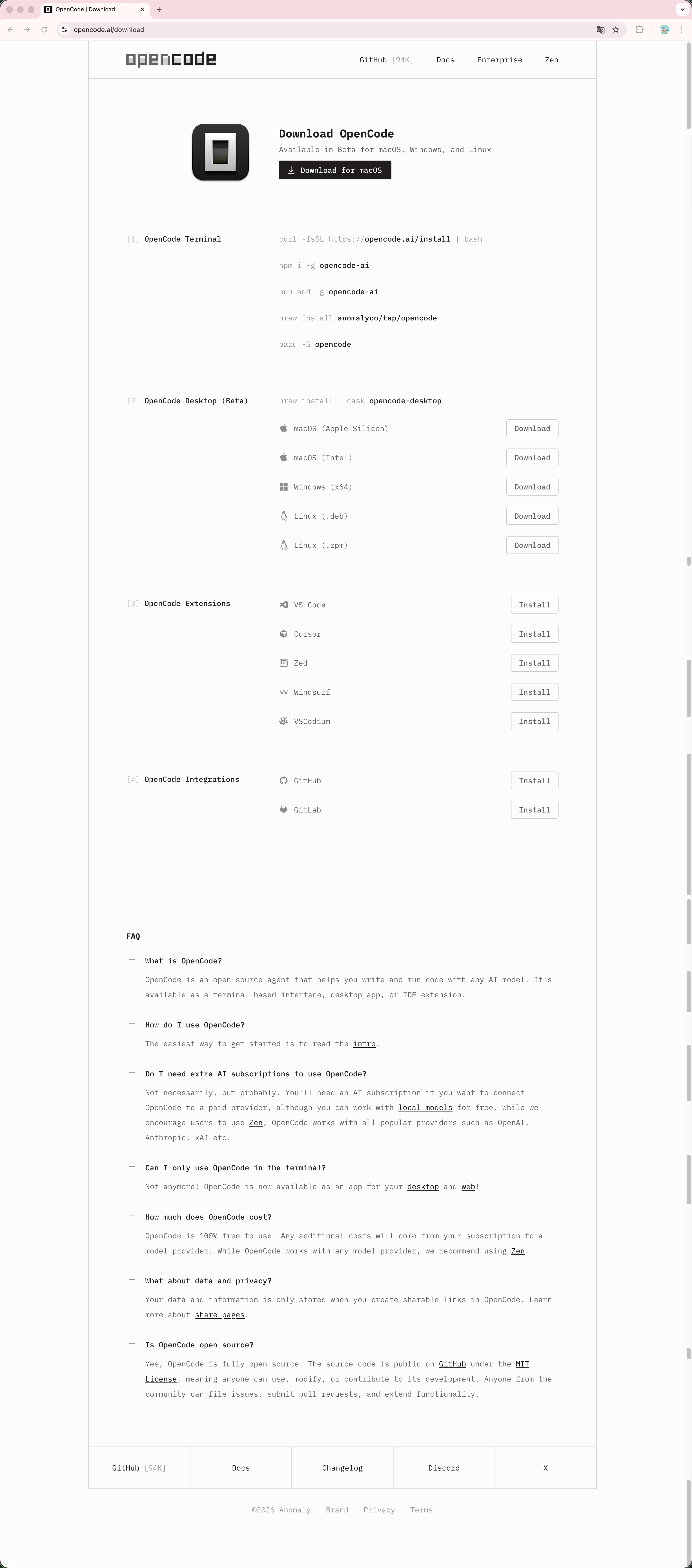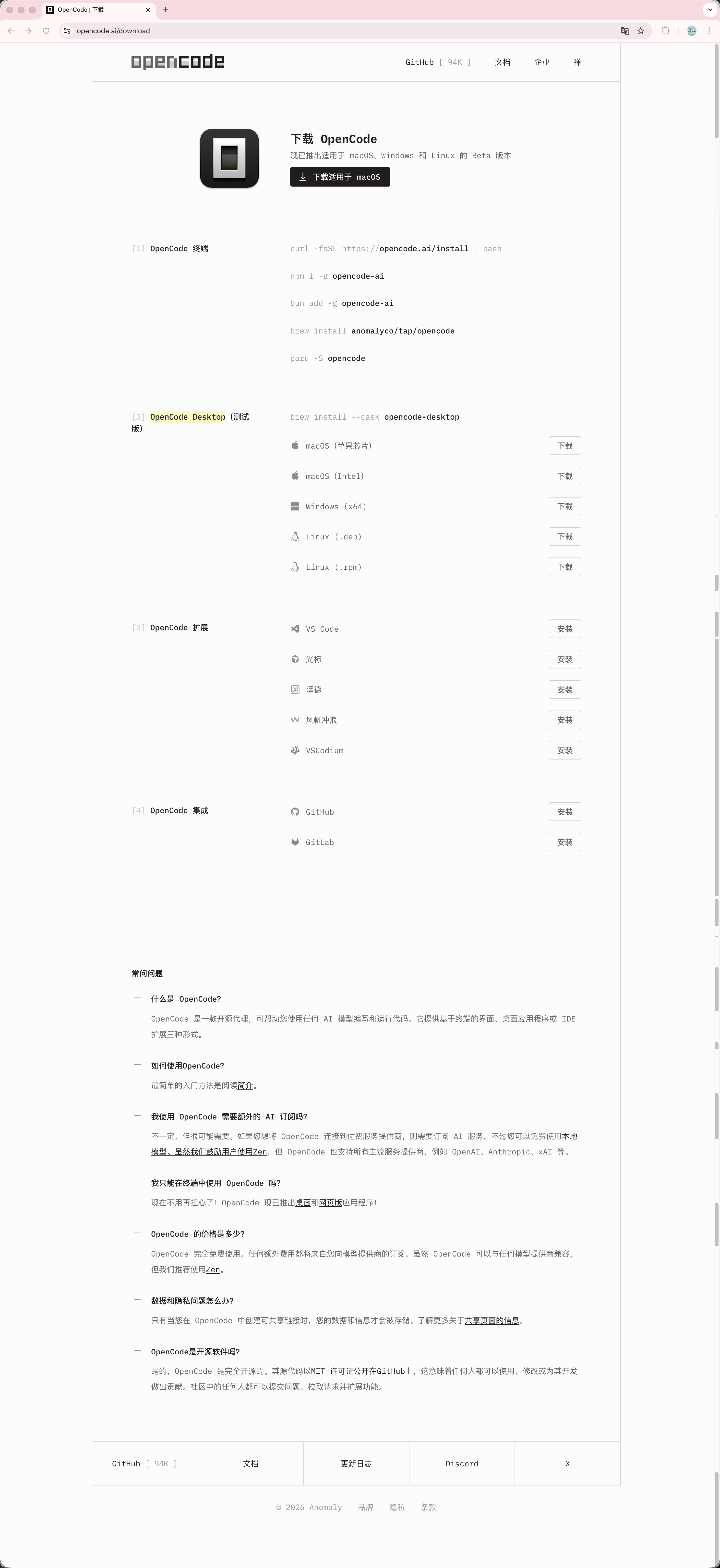 👉 桌面版下载:https://opencode.ai/download 或 GitHub Releases:https://github.com/anomalyco/opencode/releases