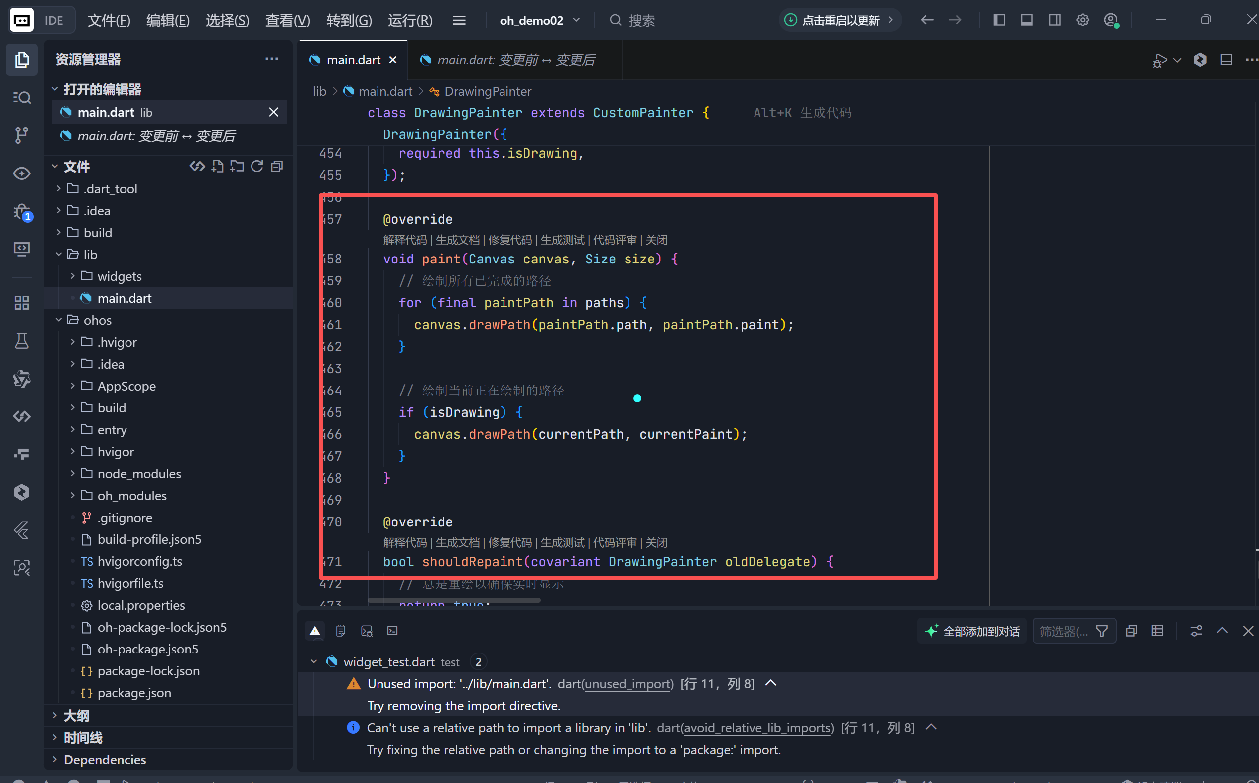 DrawingPainter 类实现了 CustomPainter 接口,负责具体的绘制工作。它的 paint 方法会遍历所有的绘制路径,并使用相应的画笔属性进行渲染。此外,它还处理了当前正在进行但尚未完成的路径的绘制。