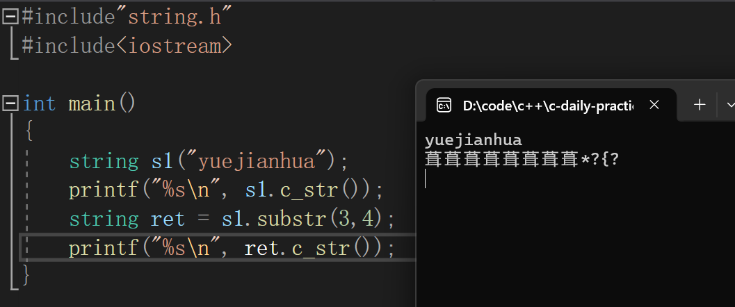 编写构造函数的时候需要注意的是,char* _str 不能初始化为nullptr。需要开辟一字节的空间并默认初始化为'\0'也就是空串,因为字符串默认以'\0'结尾。否则就会导致字符串无法以'\0'结尾,打印的时候字符串尾部就会出现乱码。