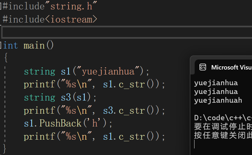 在 C++ 标准库的std::string中,它指向一块动态分配的内存,里面存放着以'\0'结尾的字符序列。模拟实现时,需要自己管理这块内存的分配、扩容和释放。