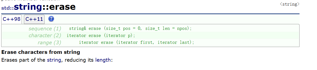 void erase(size_t pos, size_t len);