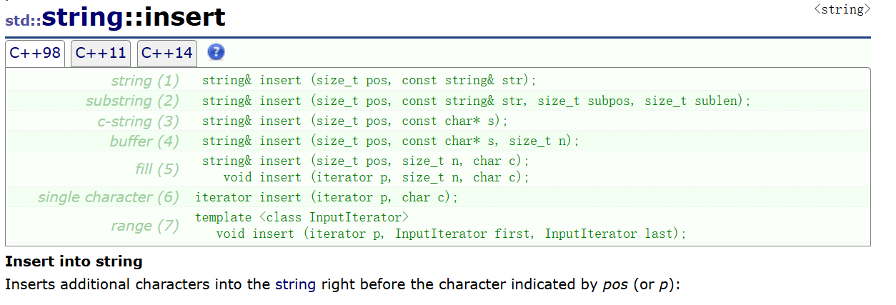 void Insert(int pos, const char* str);