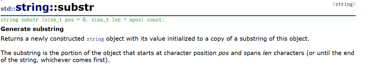 string substr(size_t pos, size_t len) const;