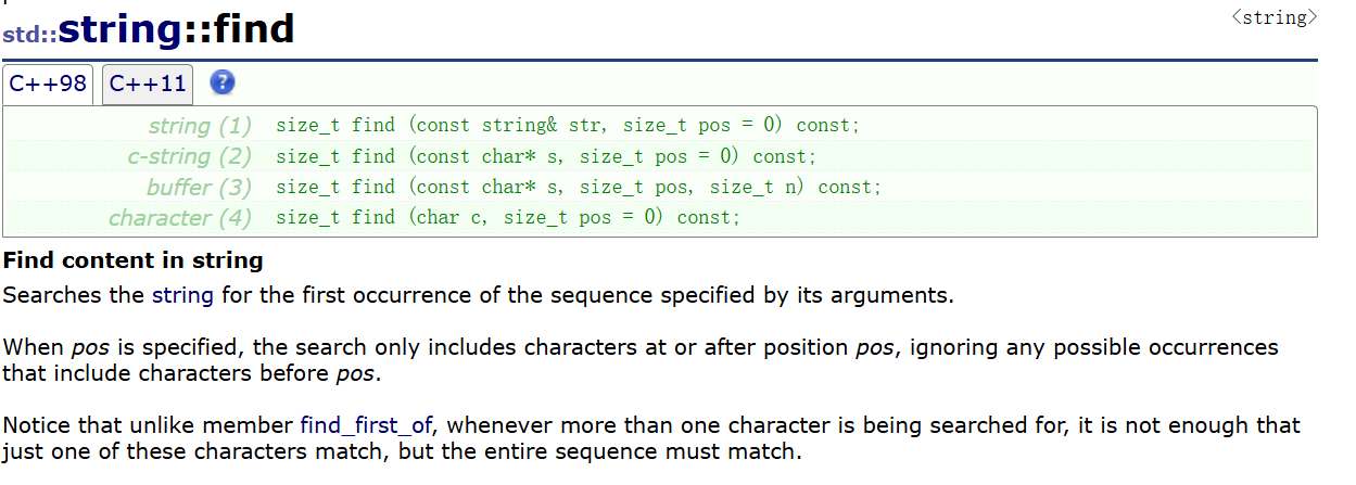 size_t find(const char* str, size_t pos = 0);