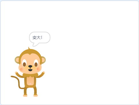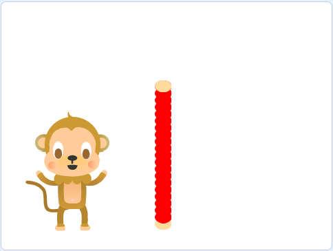 (2)猴子说完后,使用图章,从下至上在舞台上绘制出金箍棒,注意两头为黄色椭圆,中间为红色椭圆,长度自定义,不超出舞台即可。