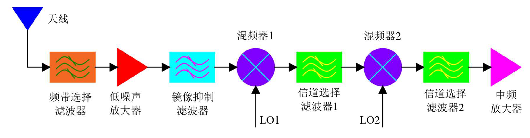 - 极宽的接收范围:例如频谱分析仪需要从几Hz接收到几十GHz,多次变频是必须的,以便将不同频段的信号逐级搬移到处理单元。