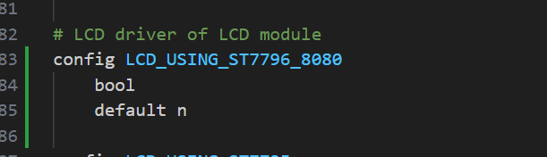 select LCD_USING_ST7796_8080 <!-- 选中的屏驱,要和注册的一样 -->