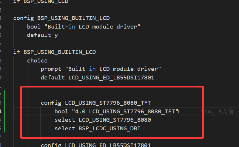 select BSP_LCDC_USING_DBI <!-- 屏幕驱动接口类型,前面有说明 -->