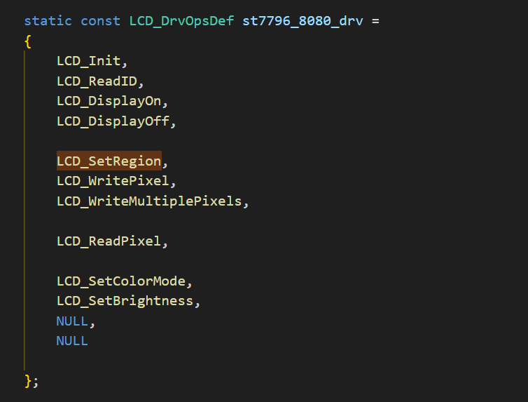 屏幕驱动关键函数之一,需要按照数据手册或现有驱动例程写入屏幕驱动寄存器