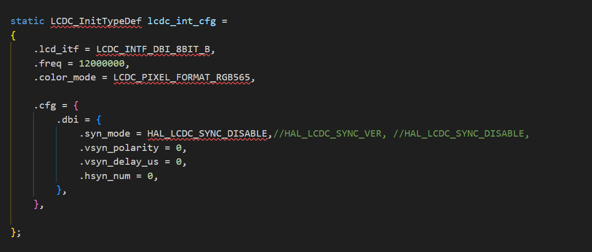 LCDC_INTF_DBI_8BIT_B:指的是屏幕接口类型,这里只8位并口接口TYPEB 说明,其他接口参照文档 屏幕模组选项