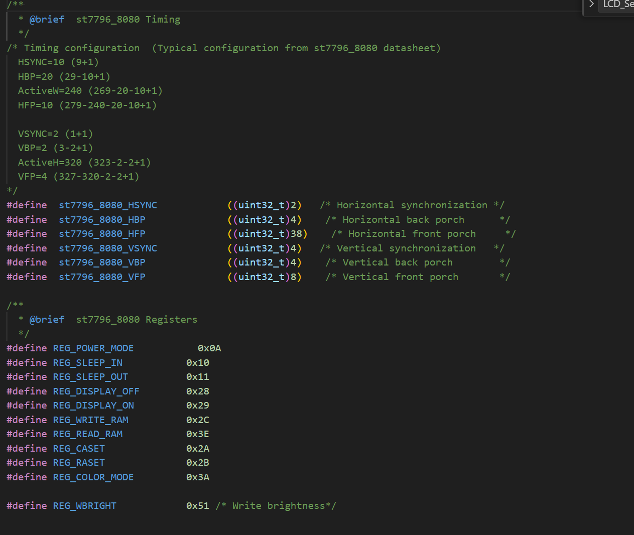 时序和寄存器,这些都需要按照数据手册中给的来配置,否则可能导致屏幕无法正常显示