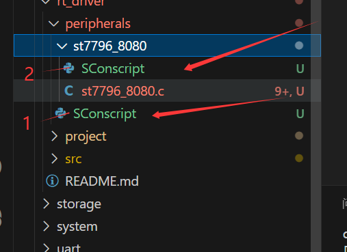 rt_driver下创建一个peripherals用来放置用户设备,这里也可以直接参考SDK/customer/peripehrals并在此目录下创建屏幕的驱动芯片代码,以及必要的链接脚本文件,如下: