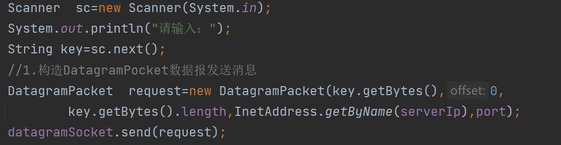 //1.构造DatagramPocket数据报发送消息