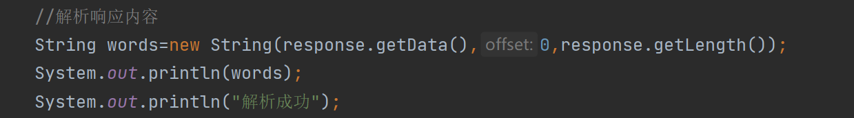 String words=new String(response.getData(),0,response.getLength());
