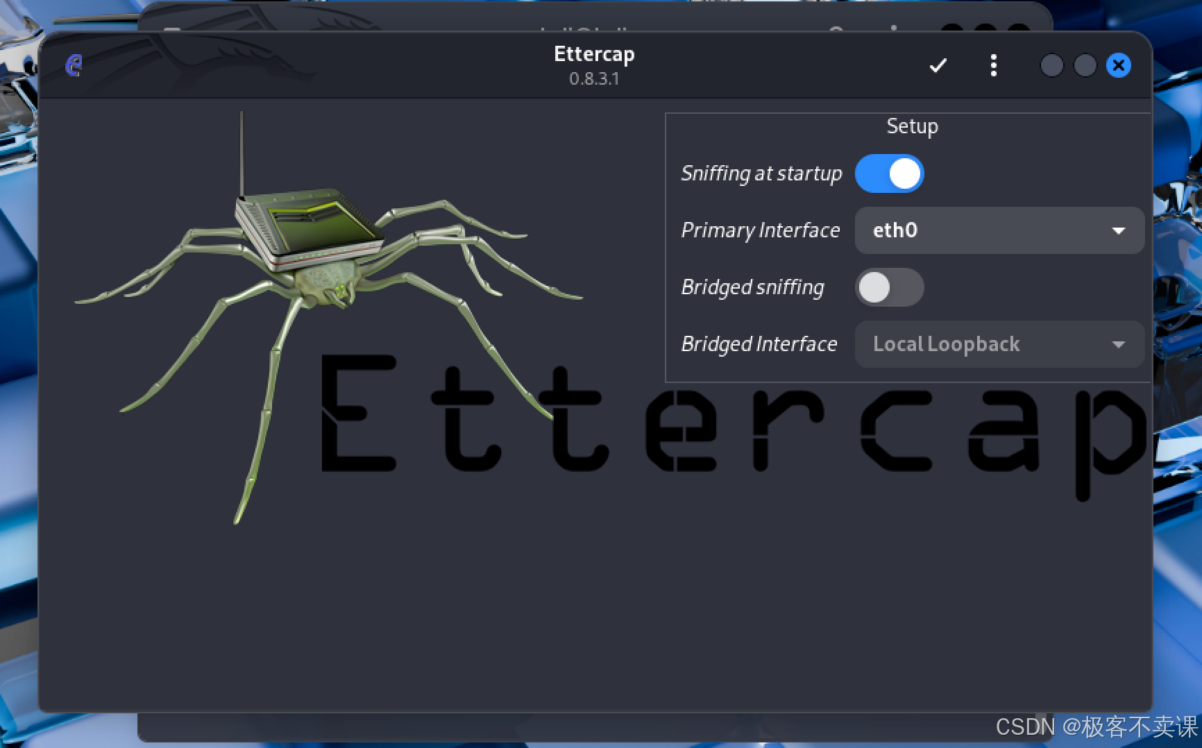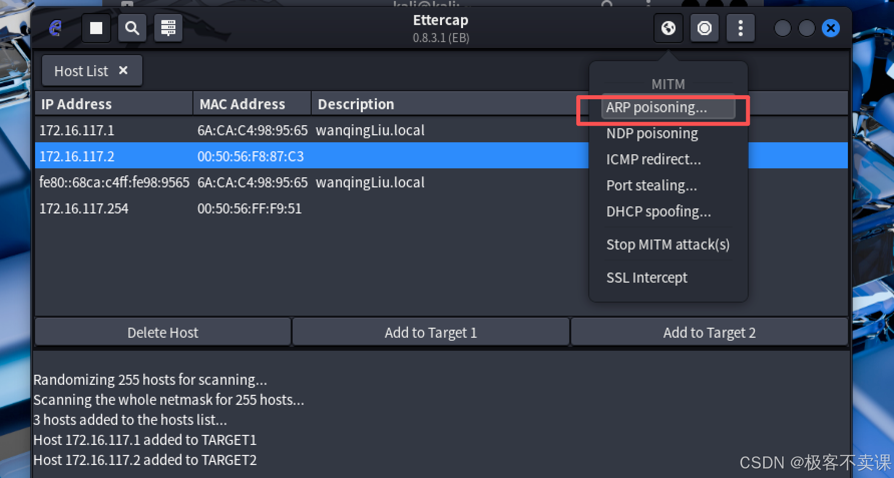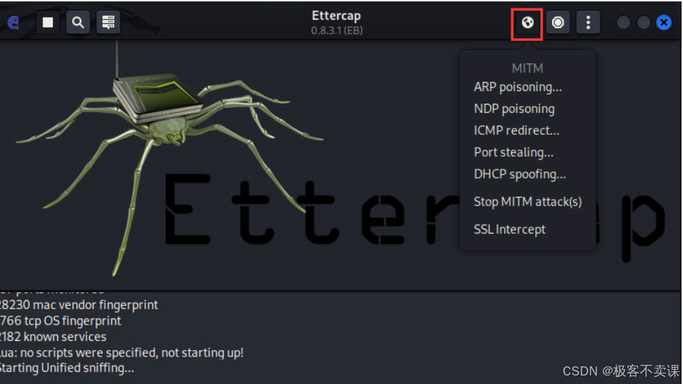 - 设置主接口:对该接口内的主机进行中间人攻击