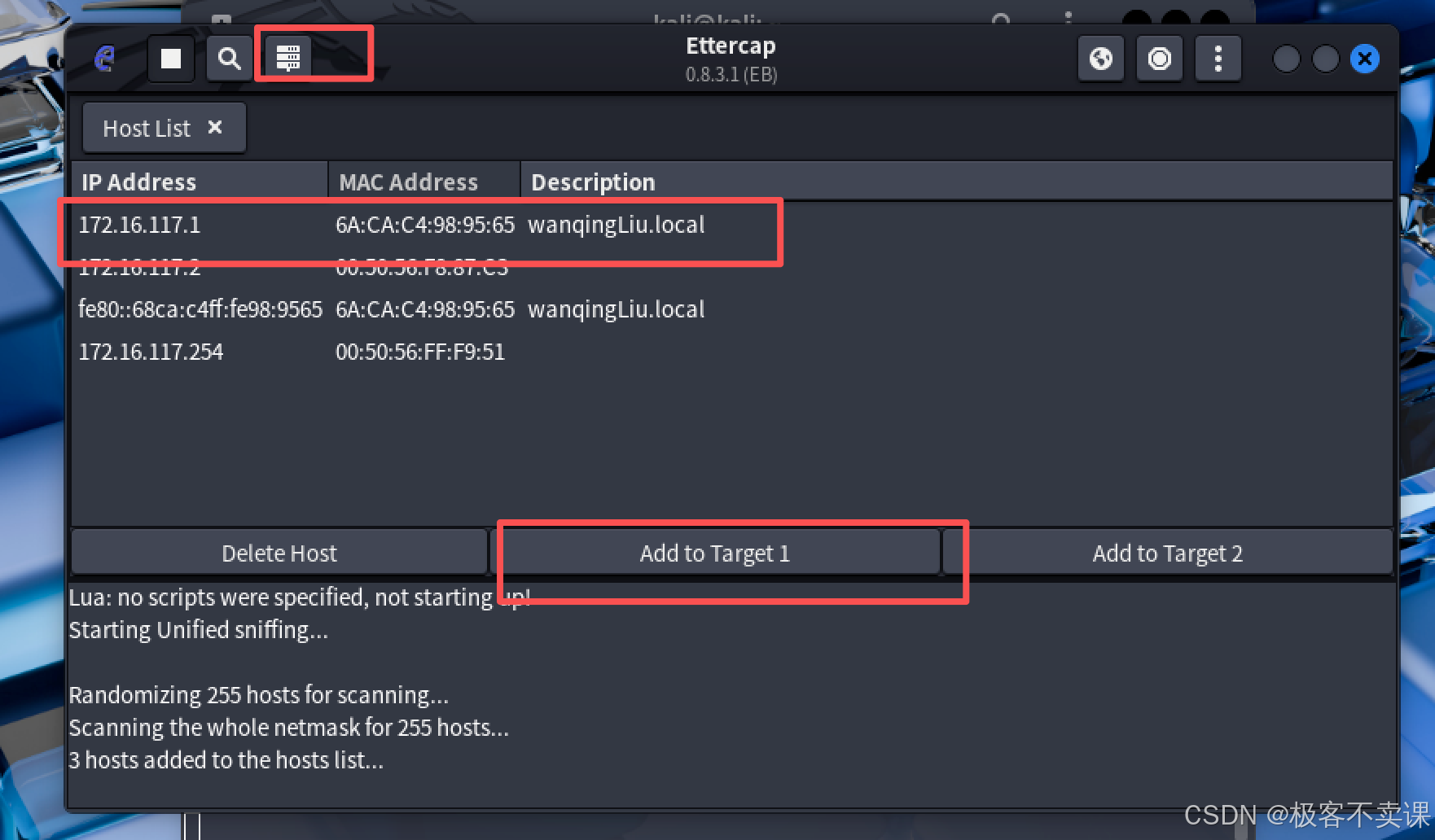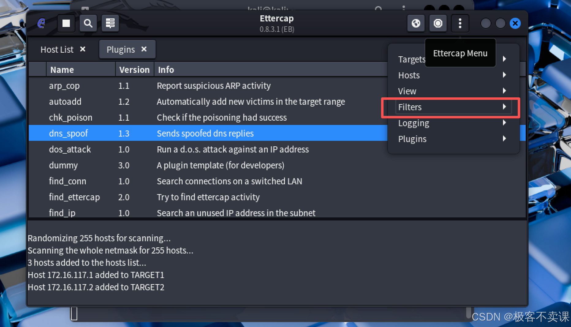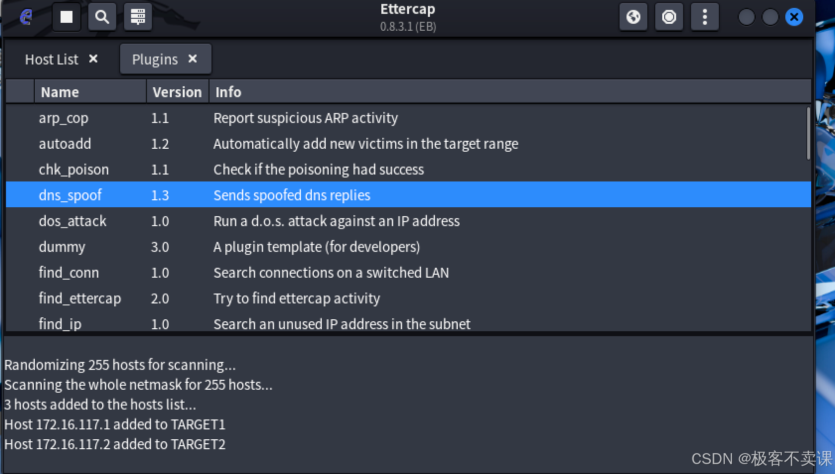 - 设置主接口:对该接口内的主机进行中间人攻击