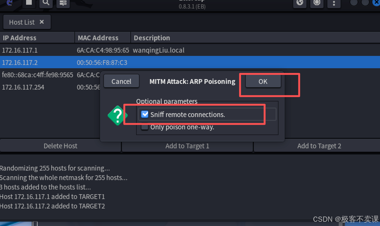 Ettercap 只能开启 arp 欺骗,不能查看捕获的数据包。