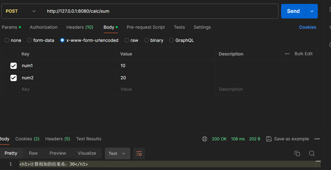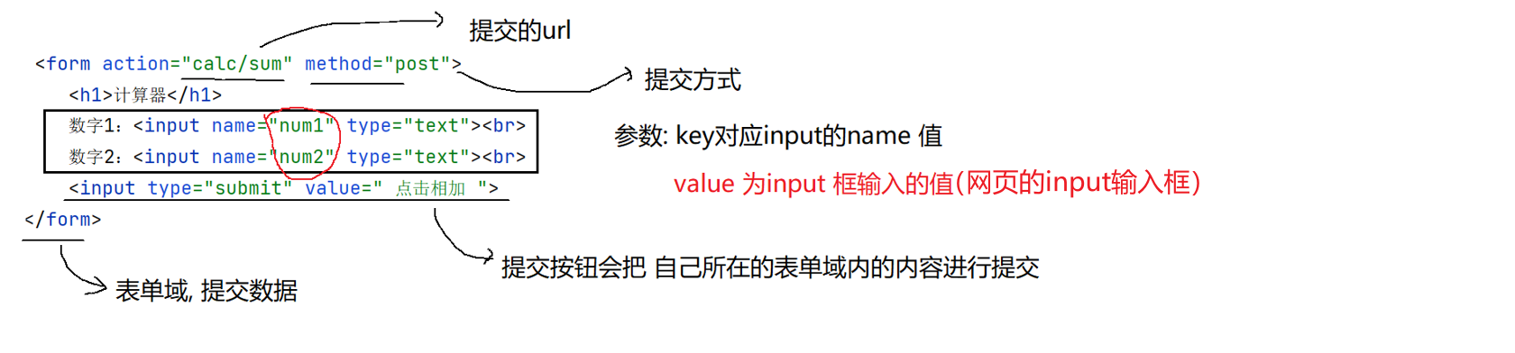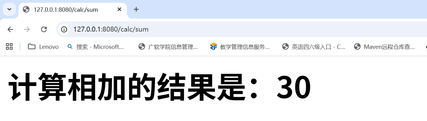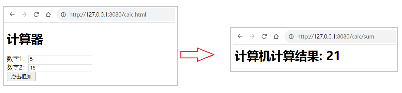 return "<h1>" + "计算相加的结果是:" + sum + "</h1>";
