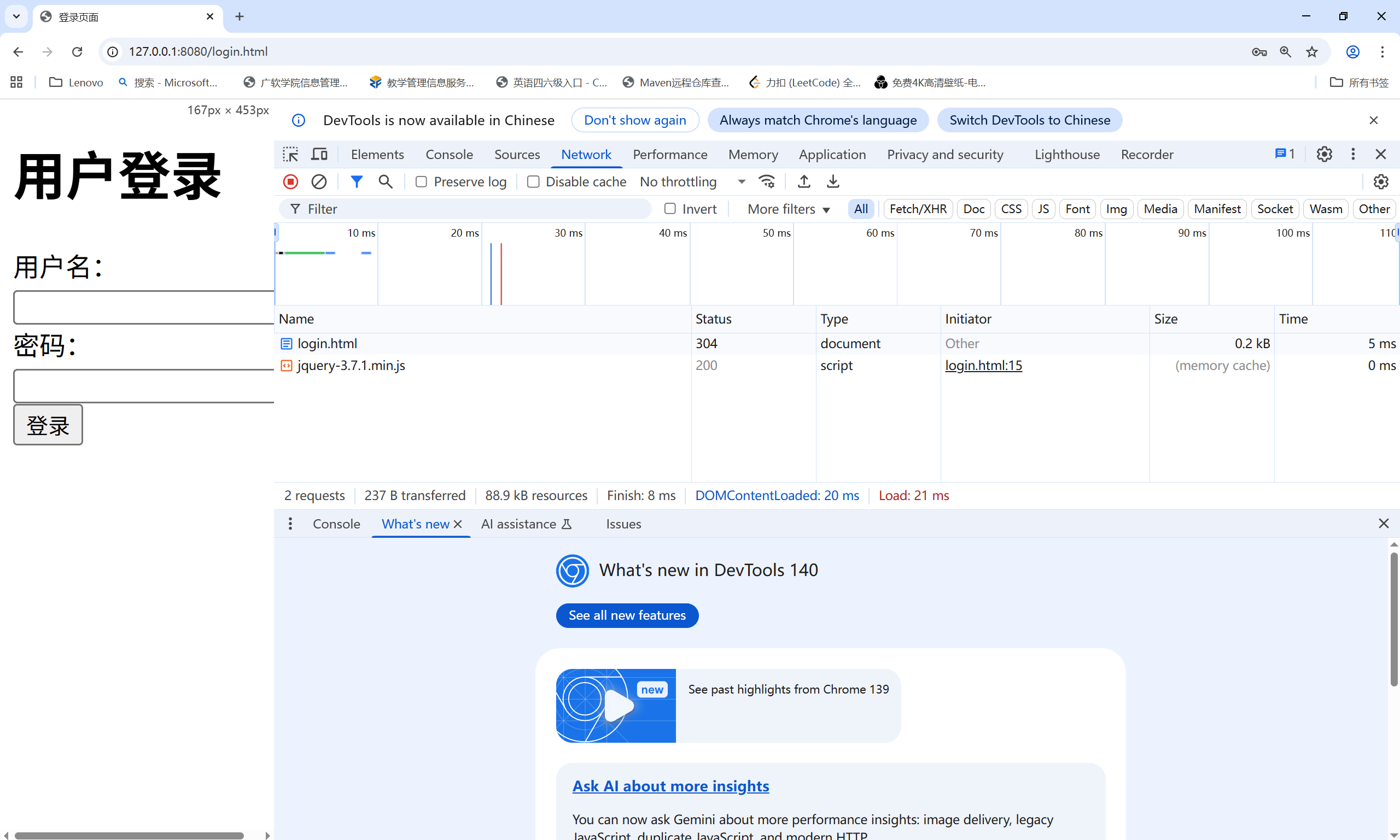 键盘按下 F12,选择 Network,可以查看我们的页面资源,是否加载成功。
