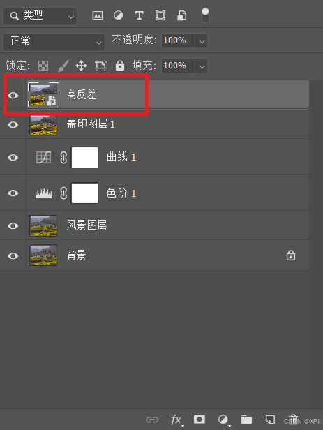 - 提升对比度(1) :单击图层面板最下面的第4个快捷按钮"