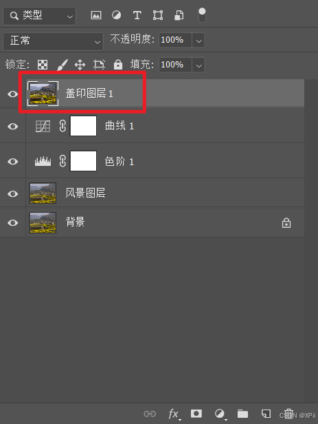 Ctrl+Shift+Alt+E,对图层进行盖印,并将其重命名为盖印图层1;