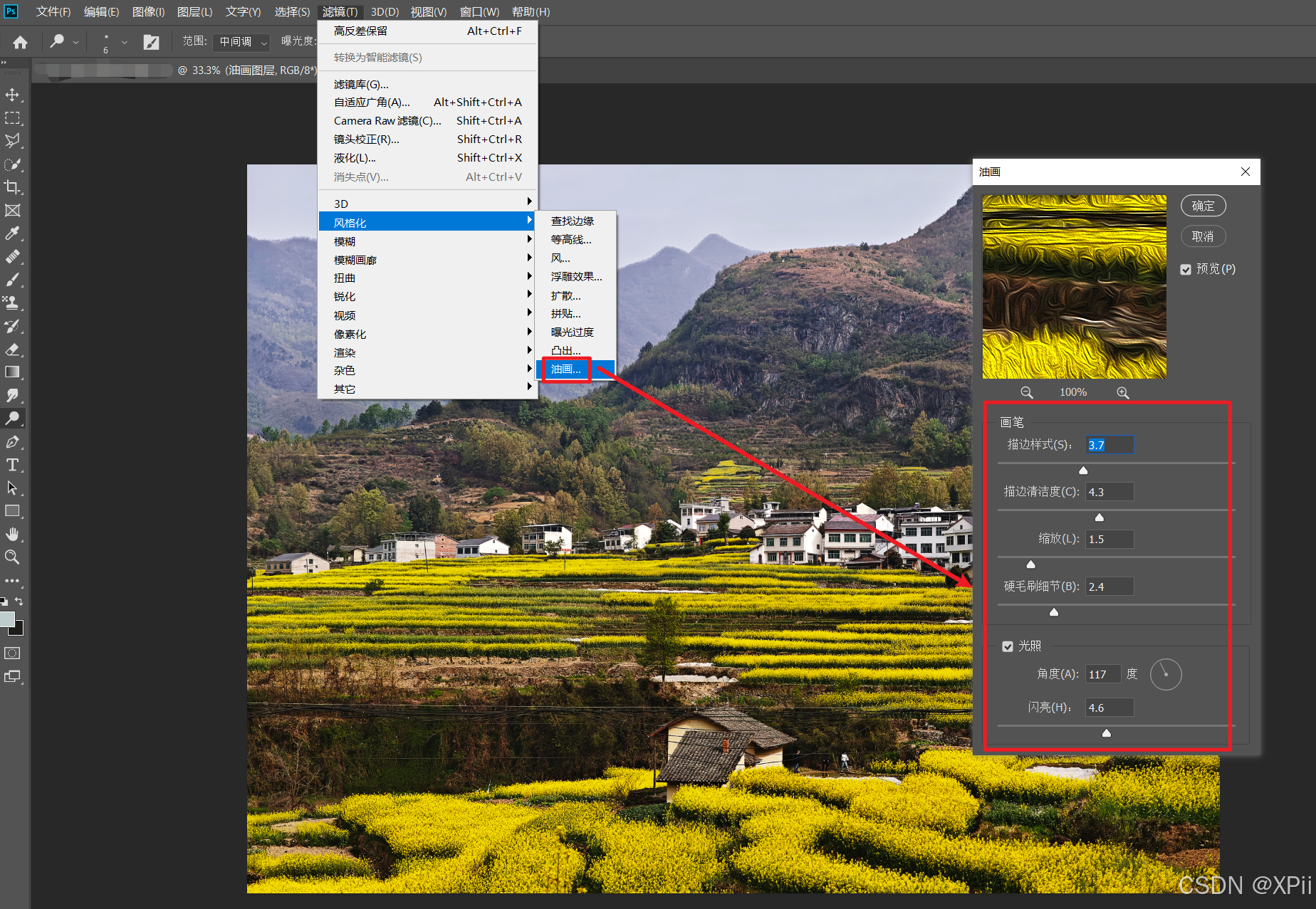 - 执行油画处理(2) :对