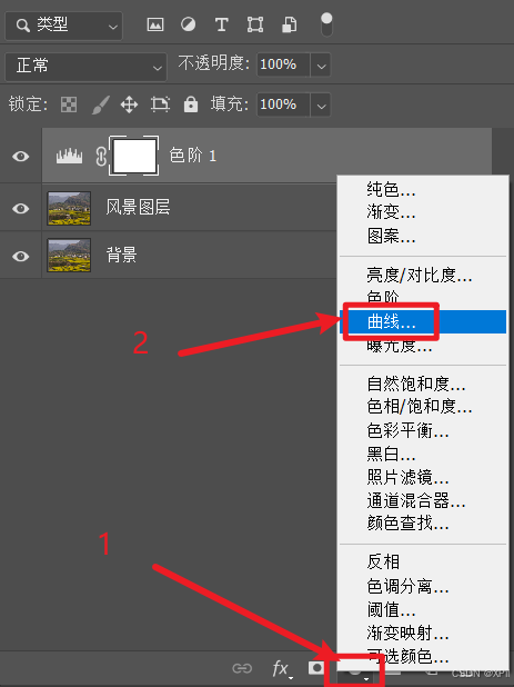 创建新的填充或调整图层",添加曲线调整图层;