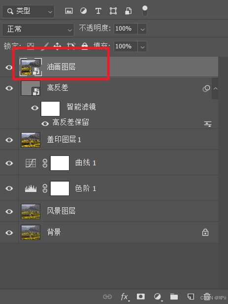 Ctrl+Shift+Alt+E,对图层进行盖印,并将其重命名为油画图层;