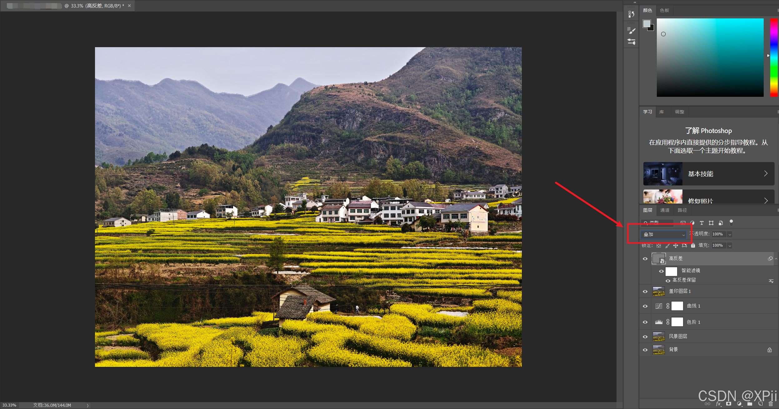 高反差图层的混合模式改为叠加;