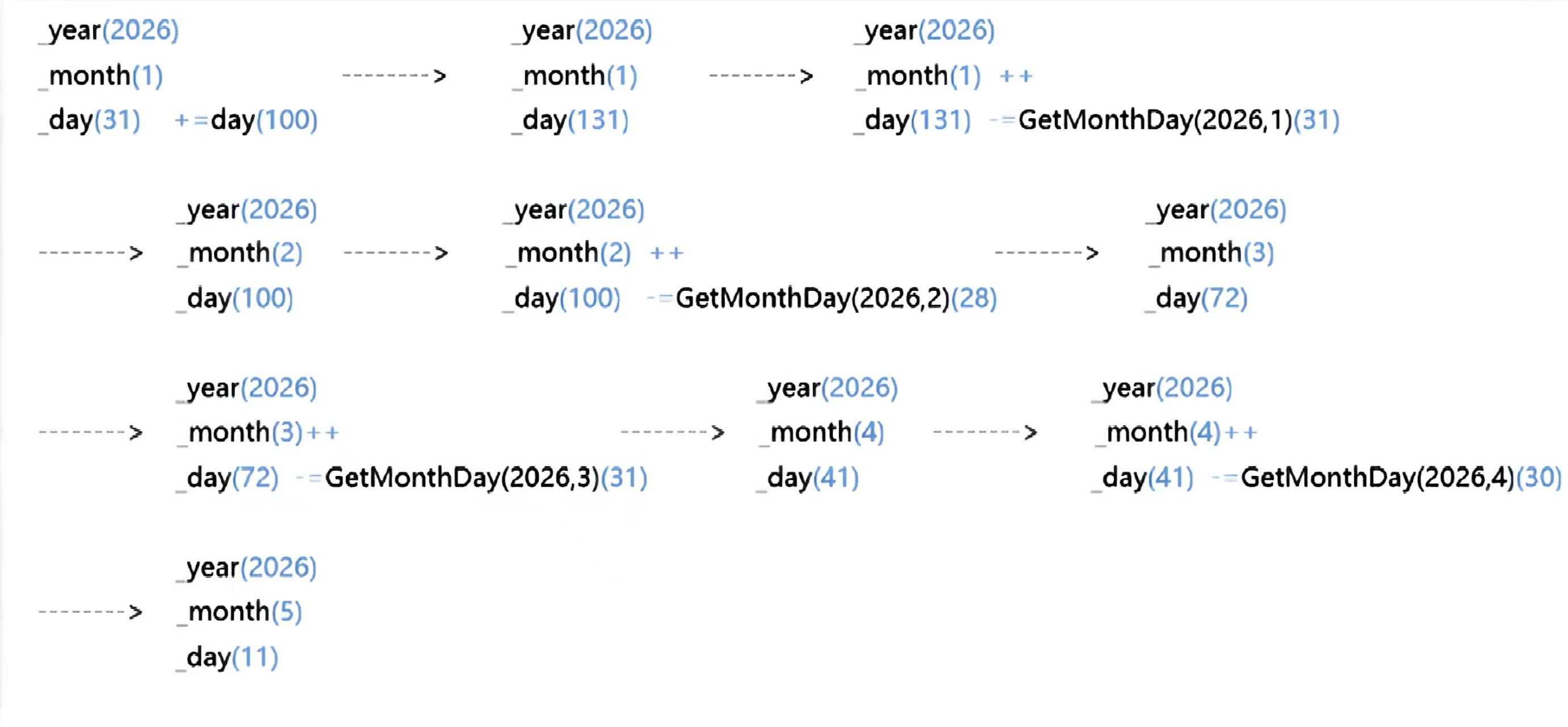while (_day > GetMonthDay(_year,_month))