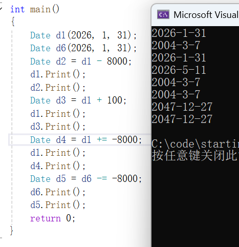 (2)+=、+、-=、-(参数为天数)的实现