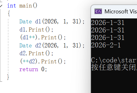 (3)前置++、后置++、前置--、后置--的实现