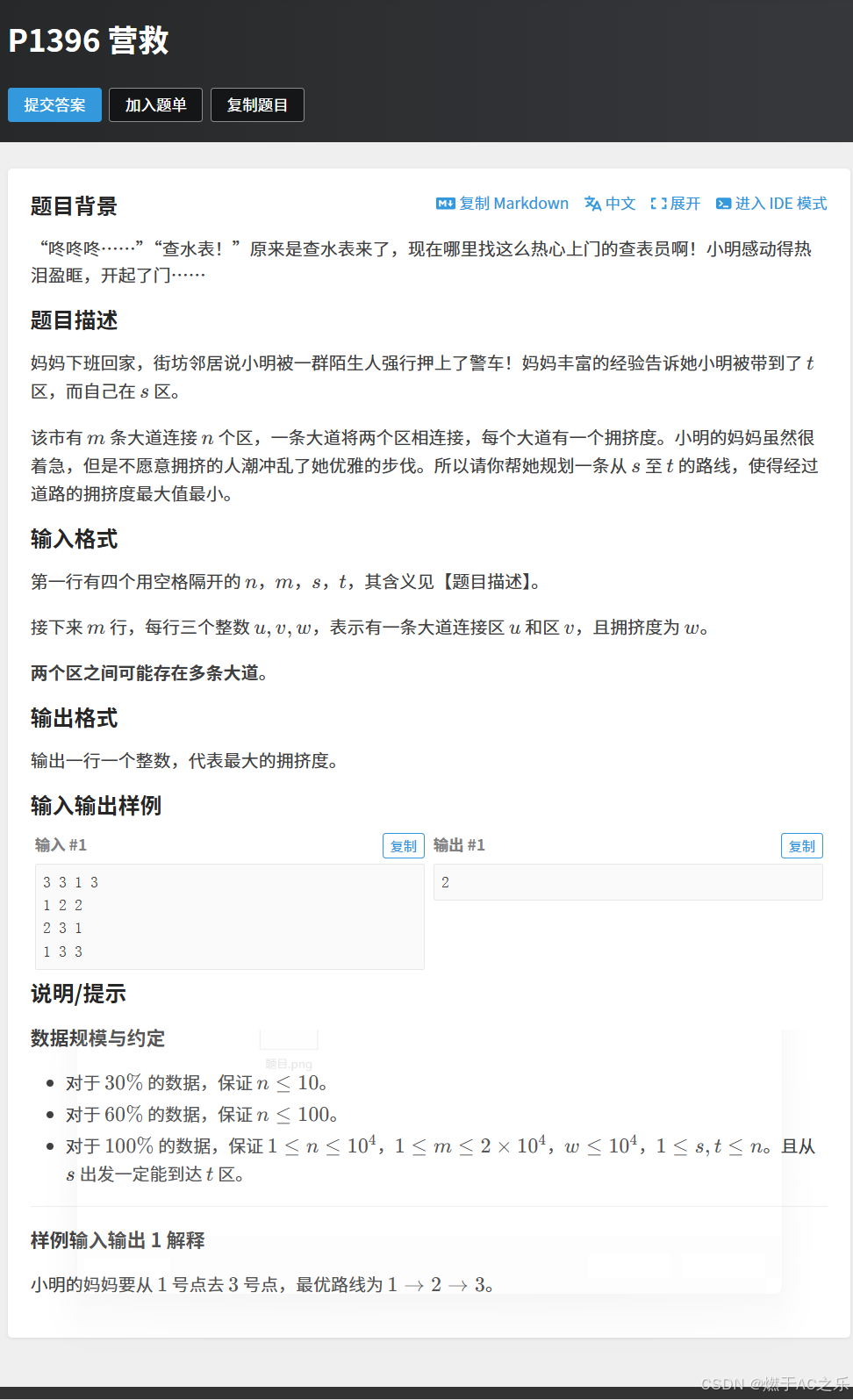 题目: P1396 营救