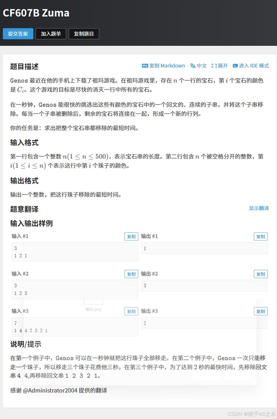 题目: CF607B Zuma