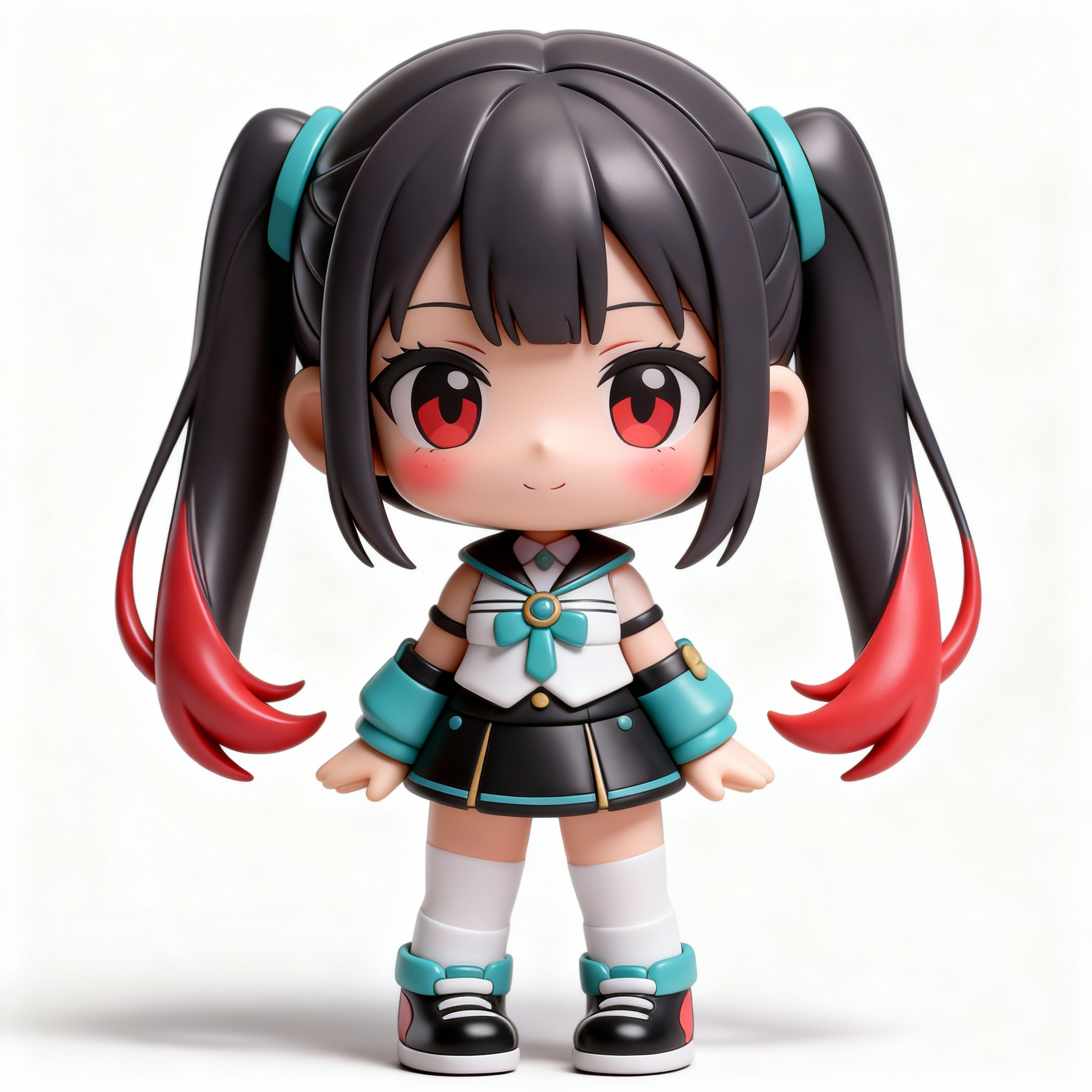 生成该动漫手办3D模型,还原PVC材质的光滑质感,精准复刻手办发型、服饰褶皱和面部细节,色彩与设计图无偏差,添加柔和光影。