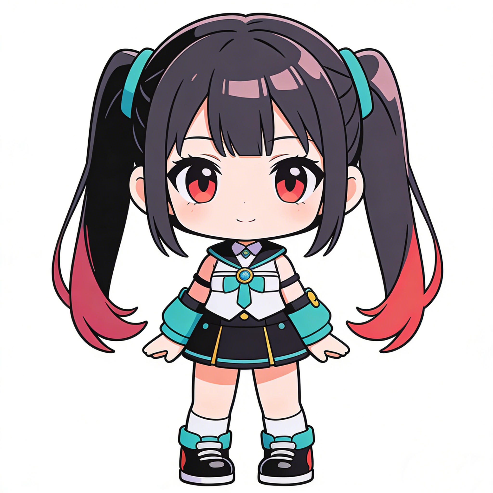 ◇原素材:一张动漫手办的2D平面设计图,仅呈现手办造型、配色和细节线条,无立体感、无肌理质感,无法展现手办的立体弧度和细节层次